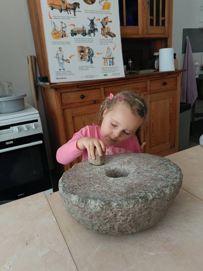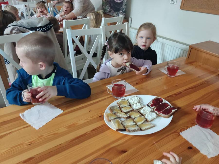 W dniu dzisiejszym grupy Smerfy i Misie udały się na wycieczkę do Stowarzyszenia Ekologiczno-Kulturalnego w Grzybowie. Dzieci wysłuchały ciekawej opowieści o tradycyjnym pieczeniu chleba, a następnie samodzielnie formowały i piekły pyszne bułeczki. Podczas zwiedzania gospodarstwa mogły zobaczyć różne zwierzęta i dowiedzieć się, jak wygląda ich codzienne życie. Na uczestników czekało również drugie śniadanie przygotowane z lokalnych produktów oraz wspaniała zabawa na placu zabaw. Na zakończenie dzieci brały udział w zbieraniu dyń, co sprawiło im wiele radości.