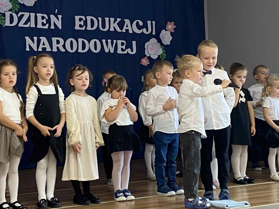Z okazji Dnia Edukacji Narodowej w naszym przedszkolu odbył się uroczysty występ przygotowany przez dzieci z grupy Misie i Krasnale. Przedszkolaki zaprezentowały piosenki, wiersze oraz krótkie inscenizacje taneczne, w których wyraziły swoją wdzięczność nauczycielom i wszystkim pracownikom przedszkola za ich codzienny trud, cierpliwość i serce wkładane w wychowanie. Występ przebiegł w ciepłej, radosnej atmosferze. Był to piękny, wzruszający sposób na uczczenie tego wyjątkowego dnia.
