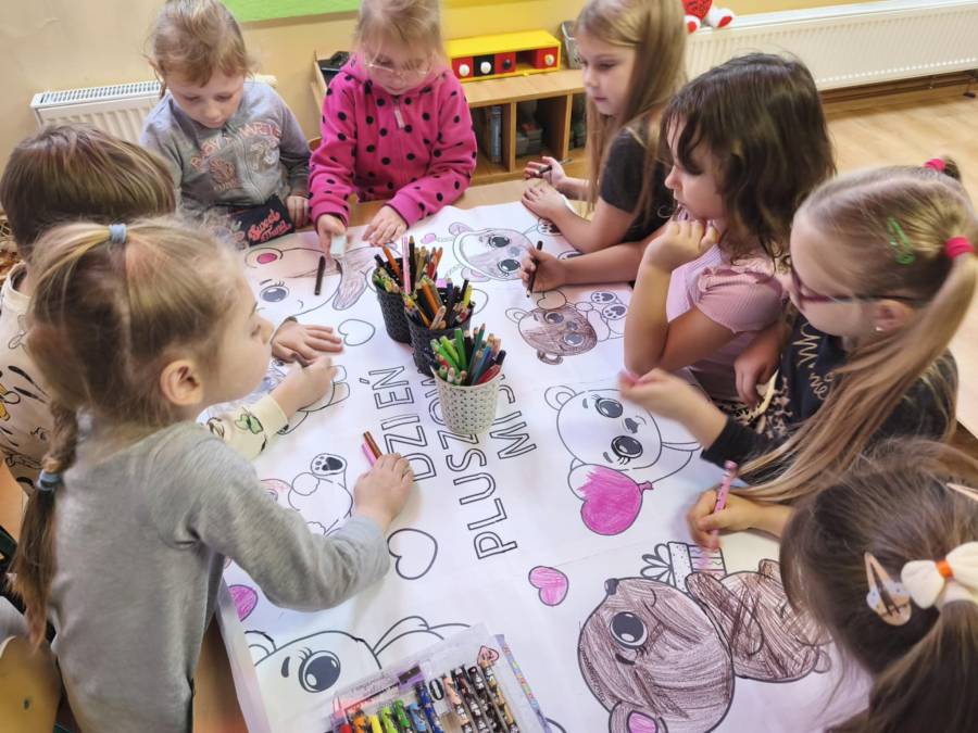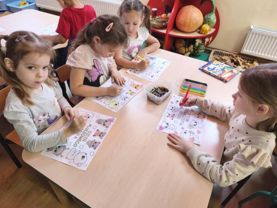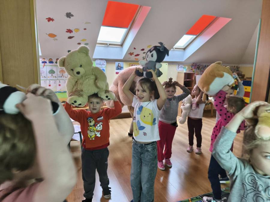 Dziś w naszym przedszkolu obchodziliśmy Dzień Pluszowego Misia. Dzieci z radością przyniosły swoje ulubione misie z domu i wspólnie bawiły się przy muzyce. Nie zabrakło wesołych konkursów sprawnościowych oraz krótkiej historii o tym, skąd wziął się ten wyjątkowy dzień. Przedszkolaki malowały misie, a także stworzyły duży, kolorowy plakat upamiętniający święto. Na zakończenie odbyła się sesja zdjęciowa z misiami- prawie jak w prawdziwym studiu fotograficznym! To był pełen uśmiechów i ciepłych emocji dzień.