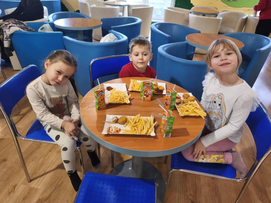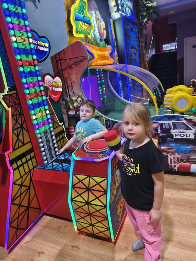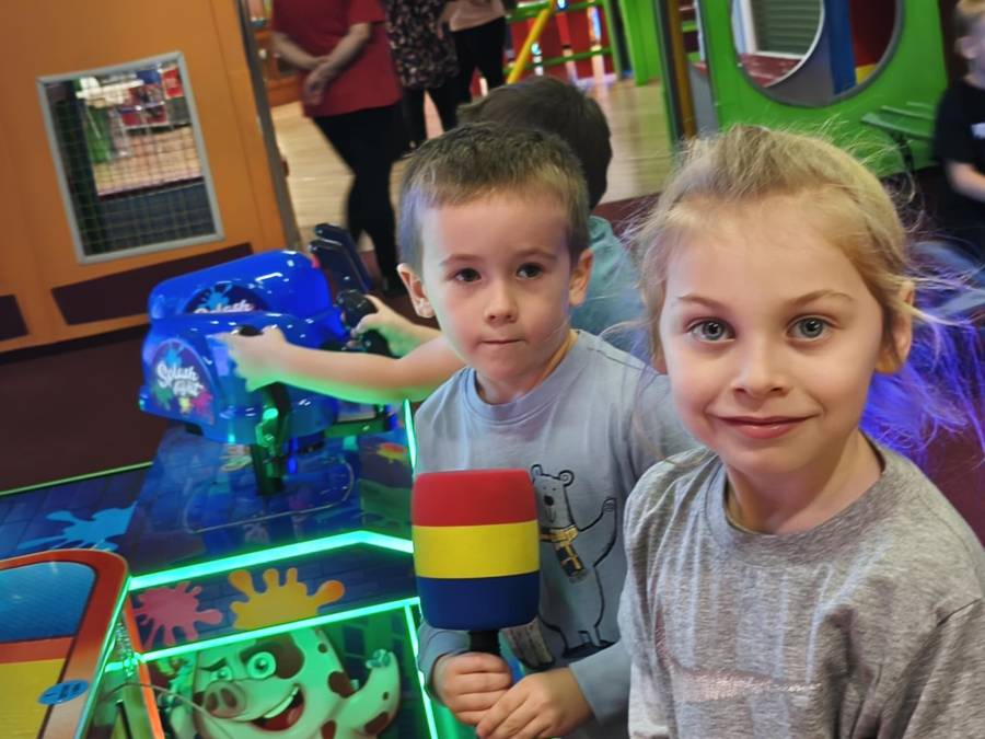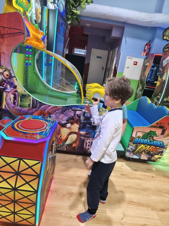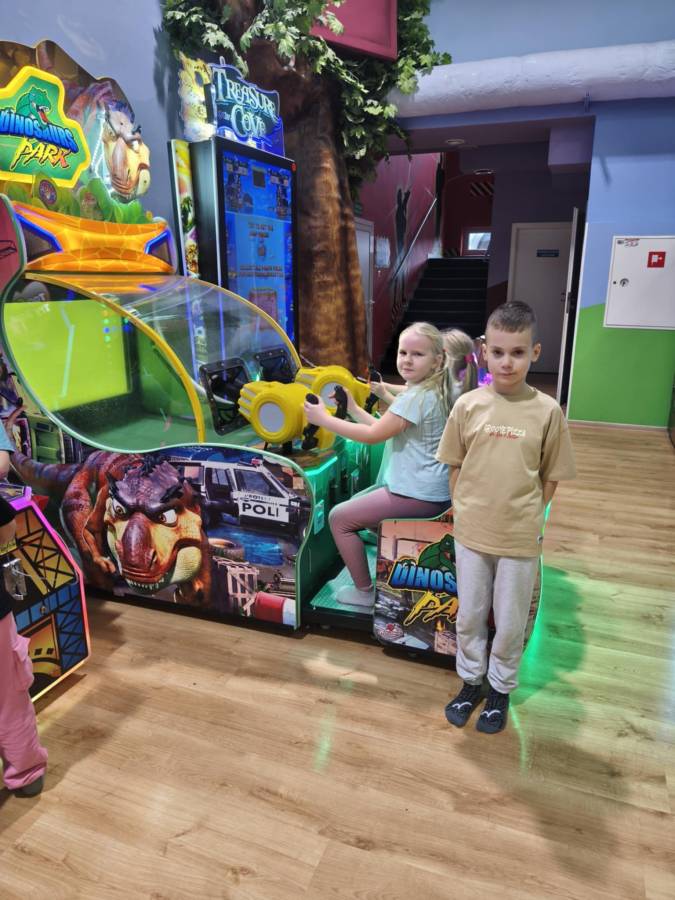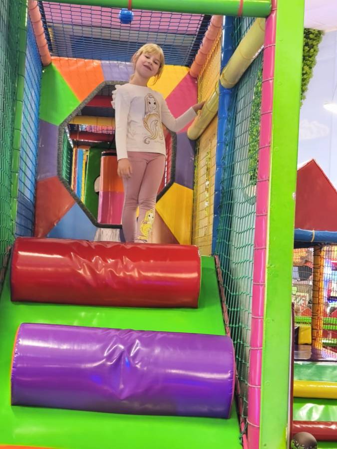 Po wejściu na salę zabaw wszyscy z ogromnym entuzjazmem korzystali z dostępnych atrakcji. Na dzieci czekały m.in. mini pojazdy, dmuchane skakańce, basen z piłeczkami, zjeżdżalnie oraz karuzela z konikami. Największą radość sprawiła przedszkolakom ogromna konstrukcja składająca się z labiryntu rur, przejść, tuneli, basenów z piłeczkami i zjeżdżalni, pozwalająca na aktywne, bezpieczne i radosne szaleństwo.