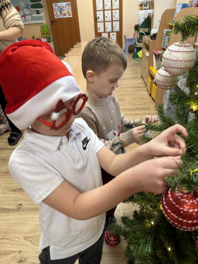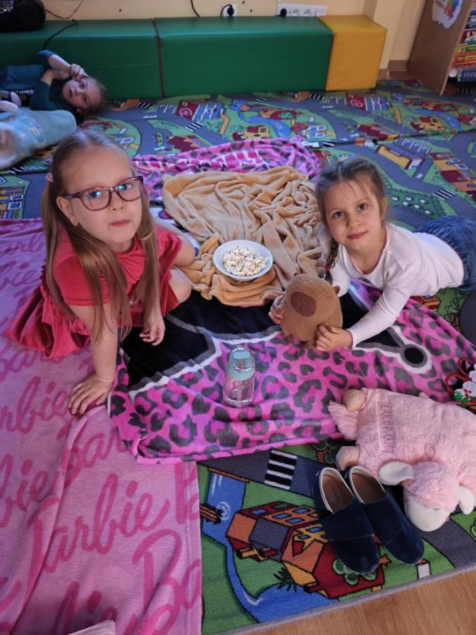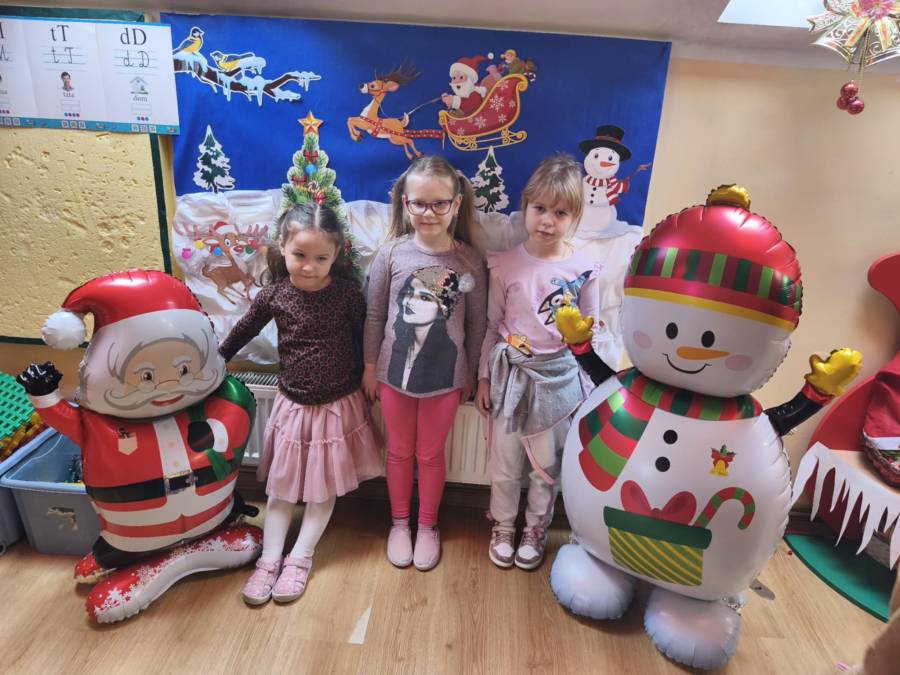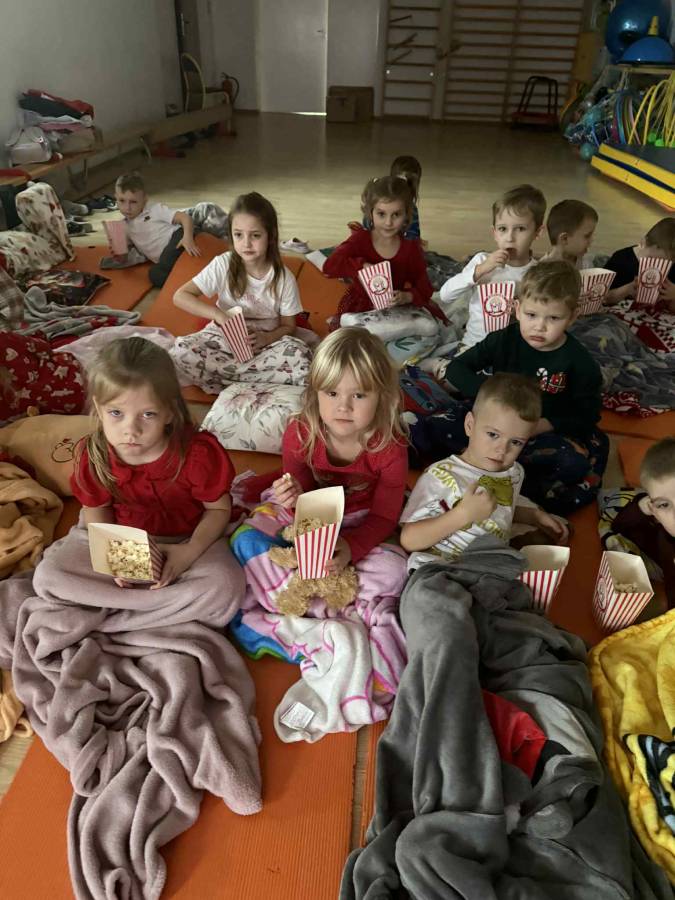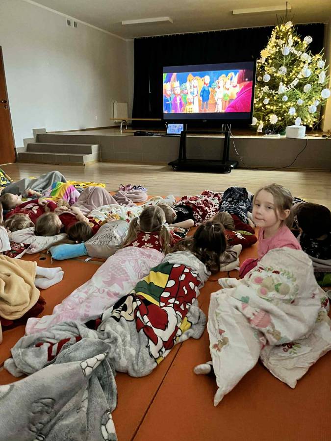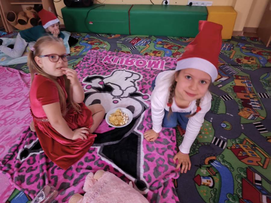 Mikołajki w naszym przedszkolu upłynęły w prawdziwie magicznej atmosferze! Już od rana w salach unosił się zapach świąt, a dzieci z wielkim entuzjazmem włączyły się we wspólne przygotowania. Najpierw czekało na nie ubieranie grupowych choinek- każdy przedszkolak zawieszał wybraną ozdobę, dzięki czemu drzewka stały się kolorowe, niepowtarzalne i pełne dziecięcej radości. W niektórych grupach odbyło się również dekorowanie świątecznych pierników. Dzieci ozdabiały je kolorowymi lukrami, posypkami i czekoladowymi drobinkami. Podczas pracy było dużo śmiechu, rozmów i świątecznych piosenek w tle, a gotowe pierniki wyglądały jak małe dzieła sztuki i smakowały równie dobrze! Po słodkich aktywnościach przyszedł czas na chwilę relaksu. W salach zrobiło się przytulnie: na podłodze pojawiły się miękkie poduszki, koce i pudełeczka z popcornem, a dzieci mogły wygodnie ułożyć się, by wspólnie obejrzeć świąteczne bajki. Magiczne światła choinki i bajkowe historie wprowadziły wszystkich w wyjątkowy, mikołajkowy nastrój.