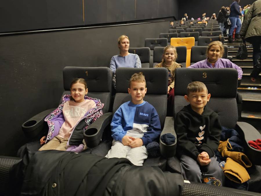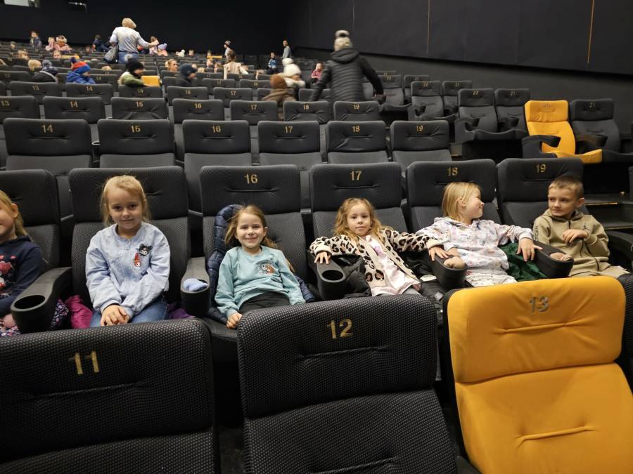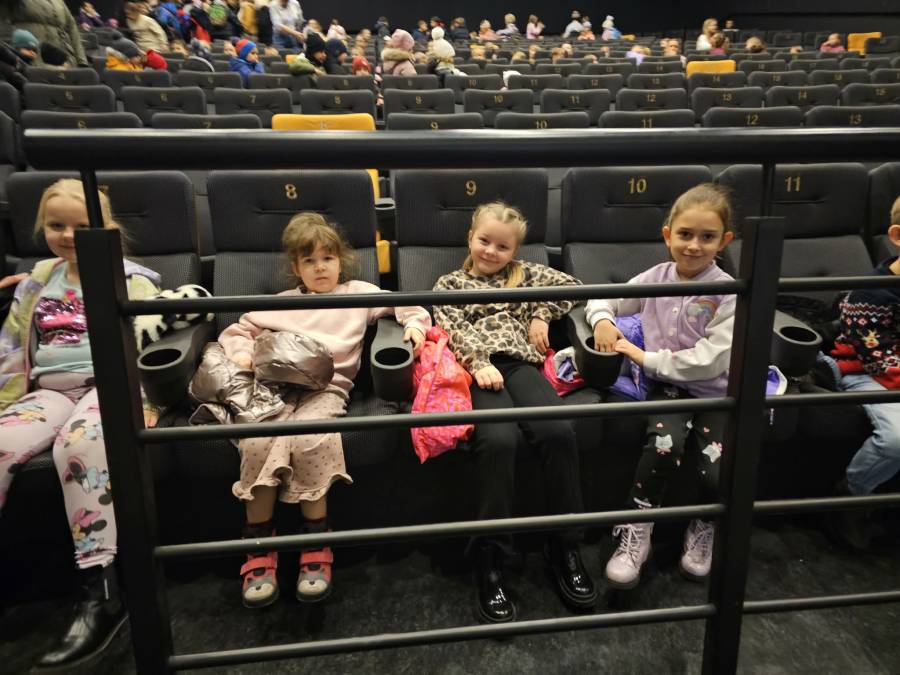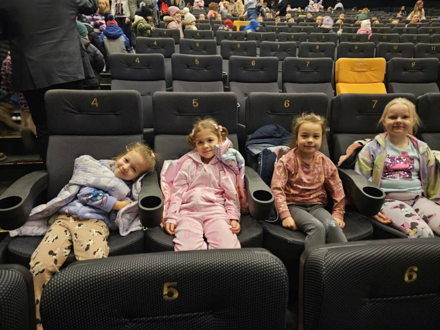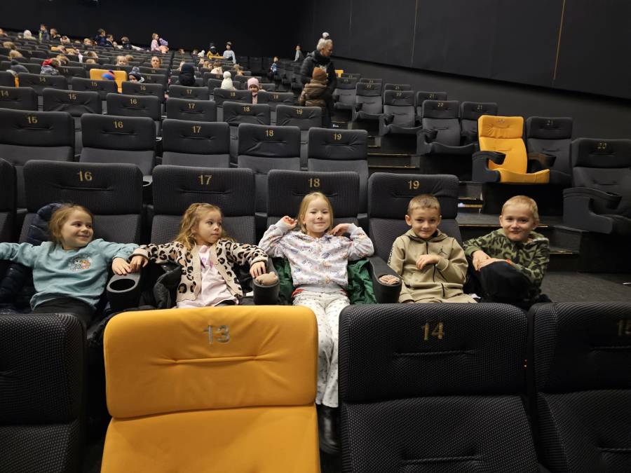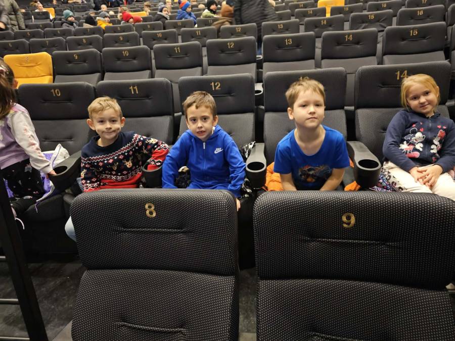 W dniu 16.12.2025 r. (wtorek) dzieci z grup: Motylki pod opieką wychowawcy, pani Agnieszki G., i pani Beaty Rz. wyjechały do kina Przedwiośnie w Płocku na słowno- muzyczny spektakl teatralny pt.: Lokomotywa Pana Tuwima przygotowany przez Narodowy Teatr Edukacji.