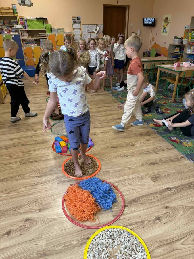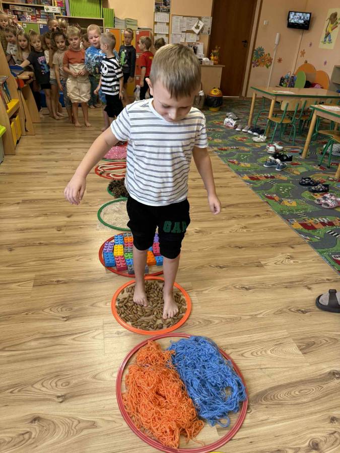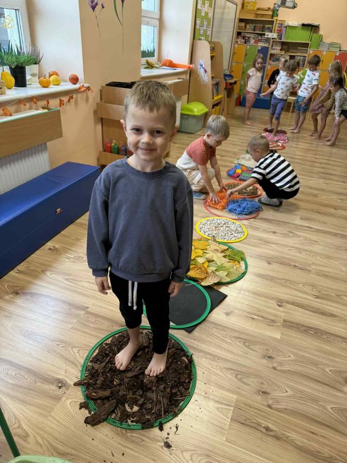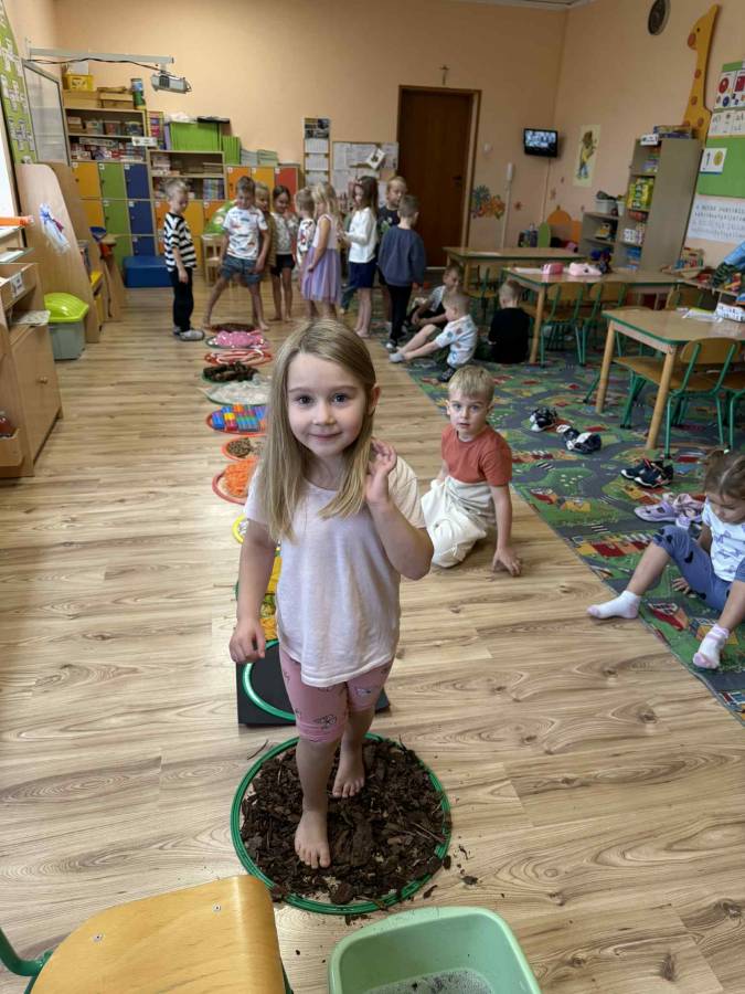Celem zajęć było rozwijanie zmysłu dotyku, pobudzanie ciekawości poznawczej oraz dostarczanie pozytywnych doświadczeń sensorycznych. Przedszkolaki świetnie się bawiły, a bose stópki długo jeszcze pamiętały te wyjątkowe doznania!